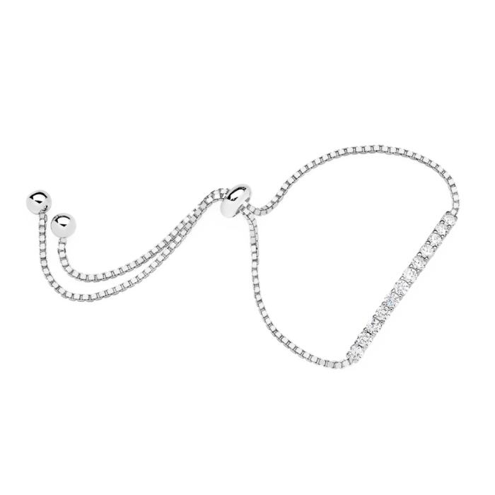 Sterling Silver CZ Curved Bar Friendship Bracelet