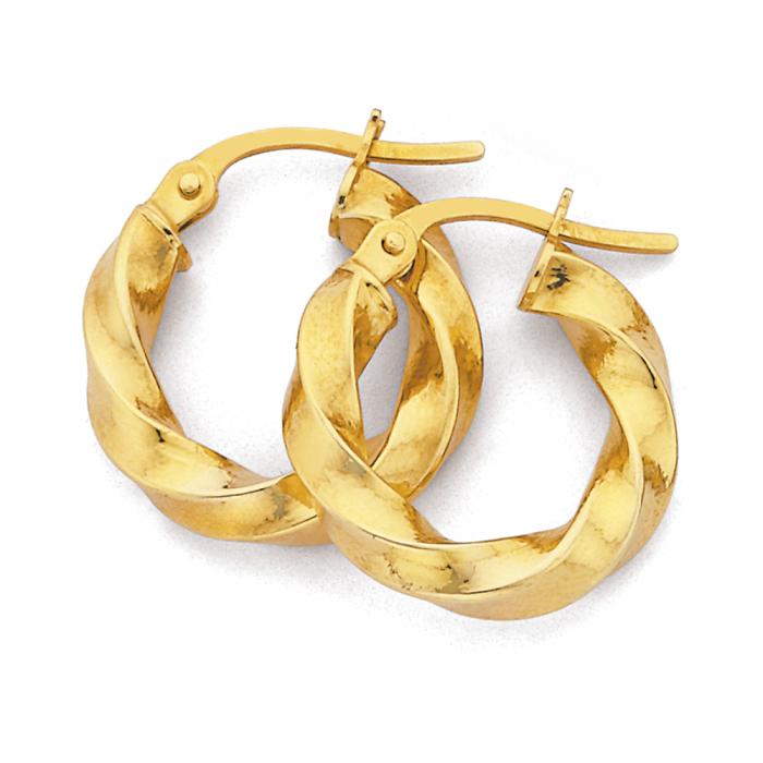 Italian Made 9ct Gold Square Twist Hoop Earrings. Approximate Dimensions - 3mm Width x 10mm Inner Diameter. All of our 9ct gold hoop earrings are hollow unless stated otherwise. Hollow Jewellery pieces are considered occasional pieces and require a certain level of care to ensure they are always looking their best.