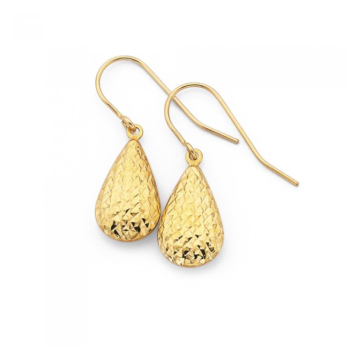 European Made 9ct Gold Diamond-Cut Pear Drop Earrings with Shepherd's Hooks.