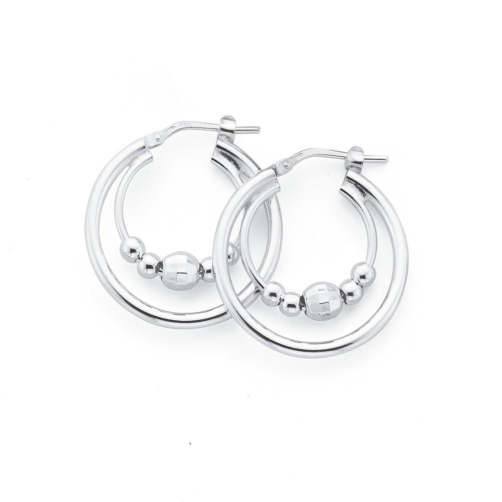 Sterling Silver Facet & Ball Double Hoop Earrings