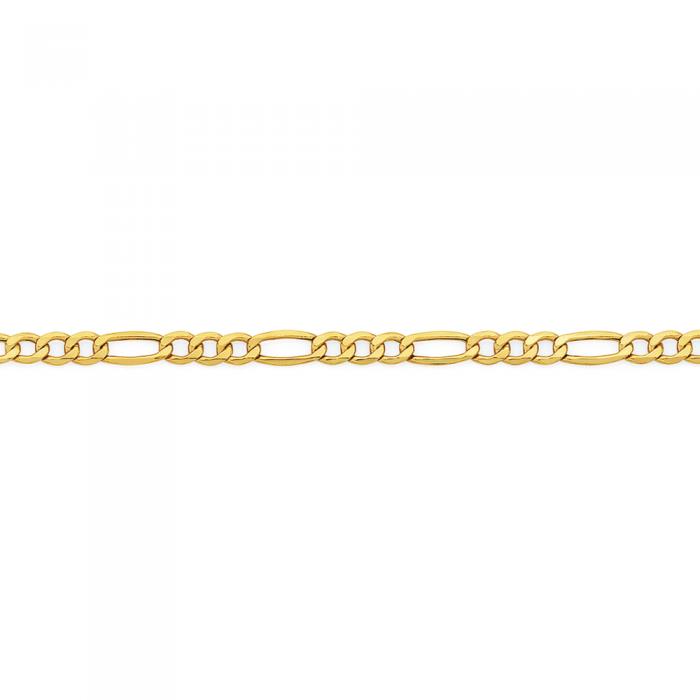 Italian Made 9ct Gold 25cm Hollow Figaro 3+1 Anklet - 60 Gauge (2mm Approximate Width)