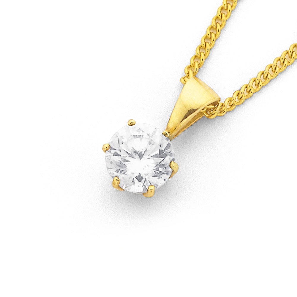 9ct Gold, Cubic Zirconia Solitaire Pendant