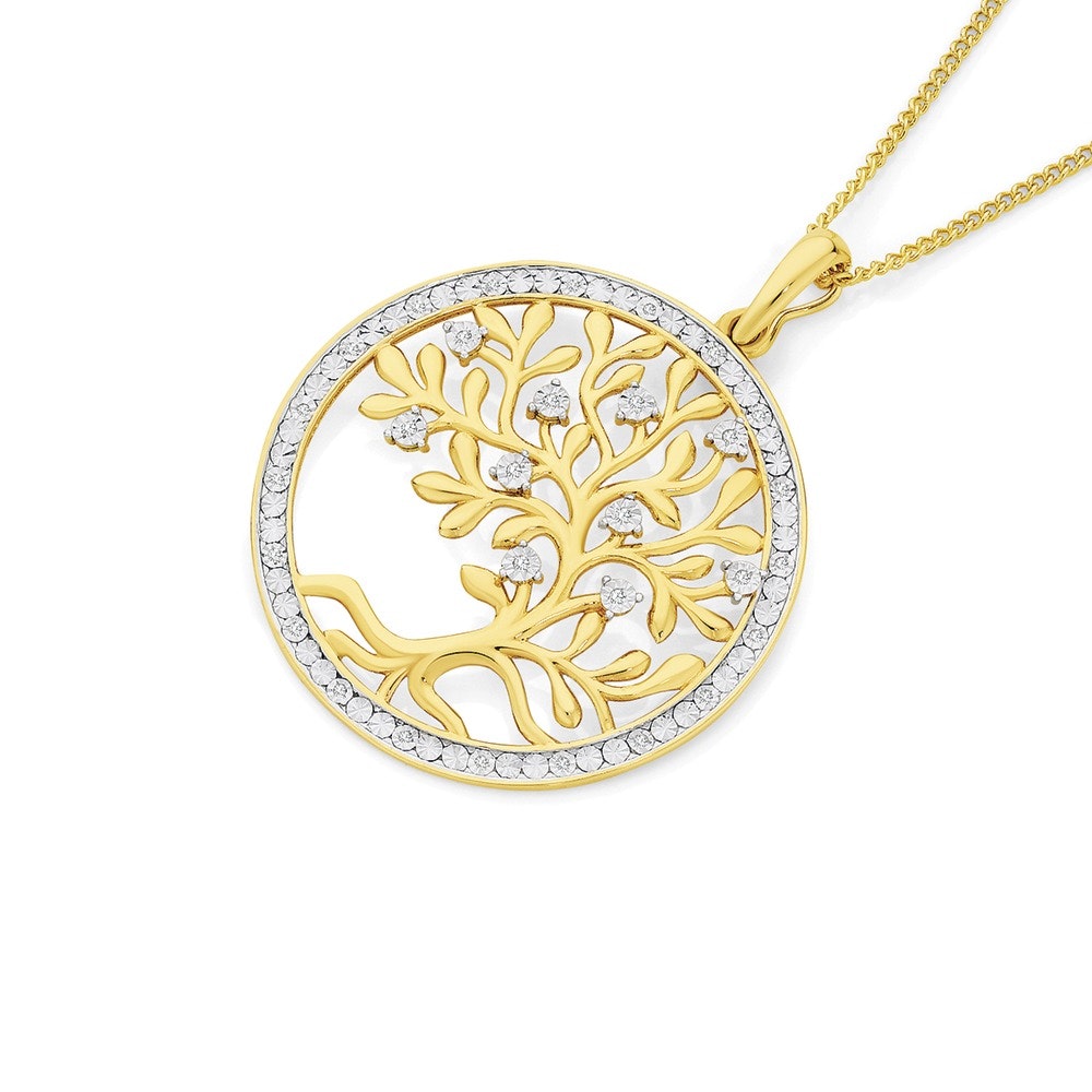9ct Gold Diamond Tree of Life in a Circle Enhancer Pendant. Size = Approx. 42mm x 32mm Including Bale.