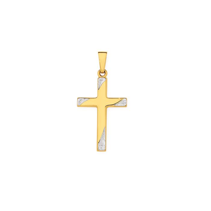 European Made 9ct Gold Two Tone 21mm Diagonal Ends Cross Pendant.
