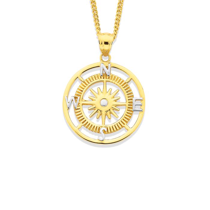 European Made 9ct Gold Two Tone Diamond-cut Open Compass Pendant - Approximate Dimensions 18mm x 25mm including Bale