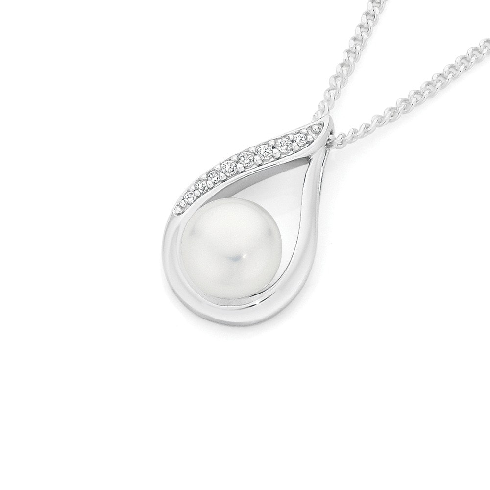 Sterling Silver Cultured Freshwater Pearl & CZ Pear Pendant