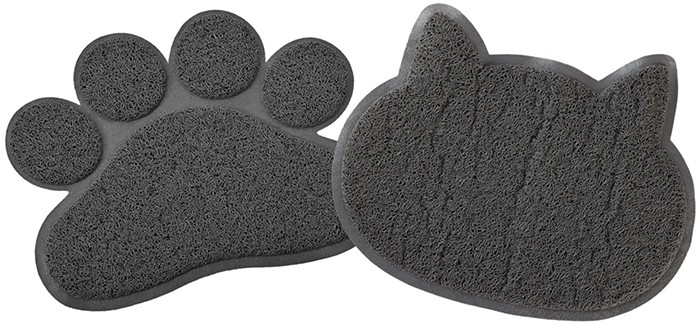 Keeps floors clean around the bowl. Available in a paw or cat shape.