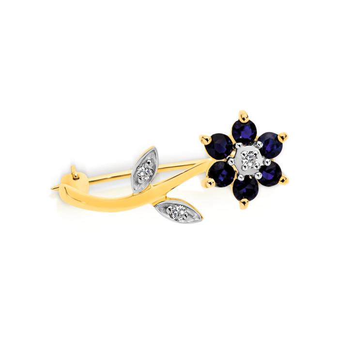 9ct Gold Sapphire & Diamond Flower Two Way Brooch and Pendant