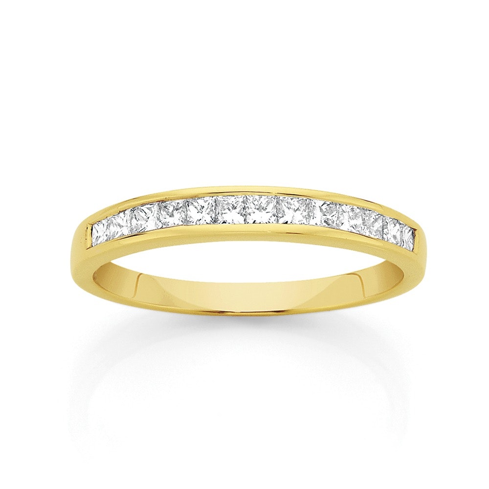 18ct Gold Diamond Princess Cut Channel Set Anniversary Band Total Diamond Weight=.50ct