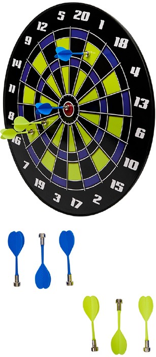 Wall mountable. Includes 6x magnetic darts.While stocks last.