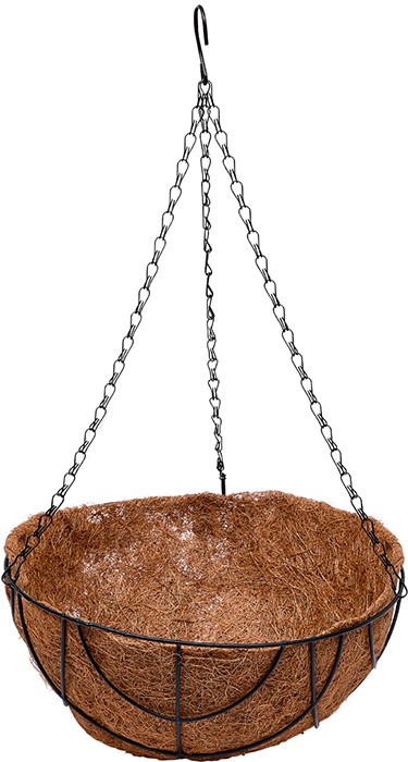 Durable iron basket. Includes chain with hook for easy indoor or outdoor hanging. D36cm.