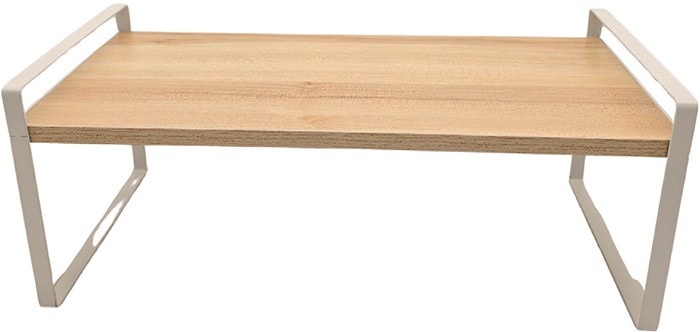 Maximises vertical space. Increases storage on benches or in cupboards. Powder coated metal with MDF construction. W40 x H16 x D20cm.