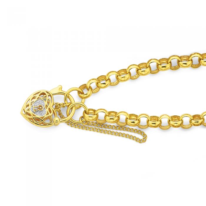 9ct Gold 19cm Solid Belcher Infinity Diamond Padlock Bracelet - Approximate Dimensions 14mm Padlock and 5.5mm Link Width
