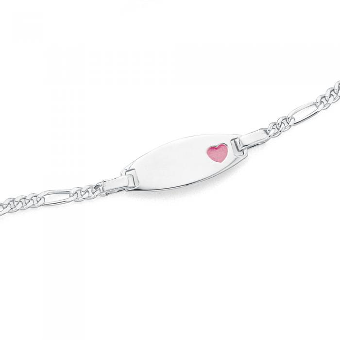 Sterling Silver 17.5cm Figaro 3+1 Heart Enamel Charm Oval Identity Bracelet
