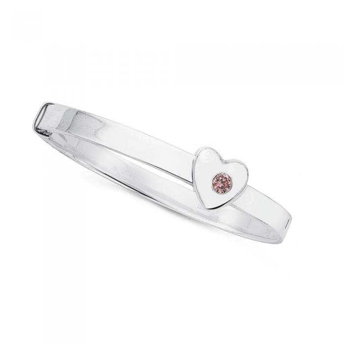 Sterling Silver Pink Cubic Zirconia Puff Heart Children's Expandable Bangle - Approximate Dimensions 4mm Width x 40mm Inner Diameter