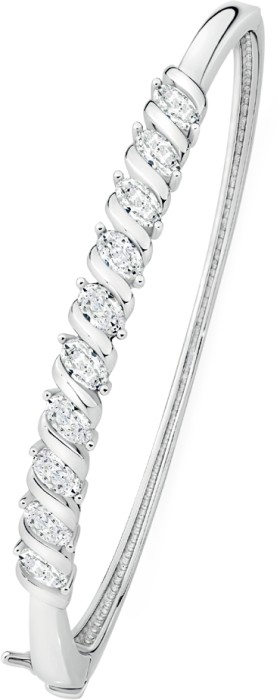 Sterling Silver Cubic Zirconia Ribbon 58x52mm Hinge Bangle1911035