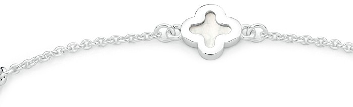 Sterling Silver Mother of Pearl 21cm Clover Cable Bracelet