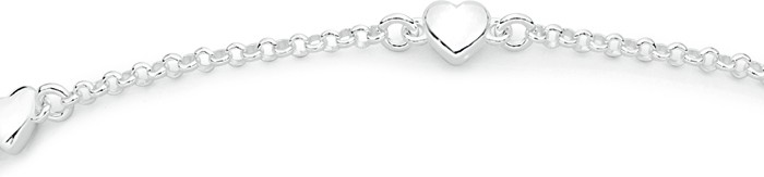 Sterling Silver Puff Heart 17+3cm Cable Bracelet - Made In Italy 1179121