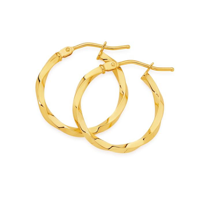 9ct Gold 15mm Squared Twist Hoop Earrings