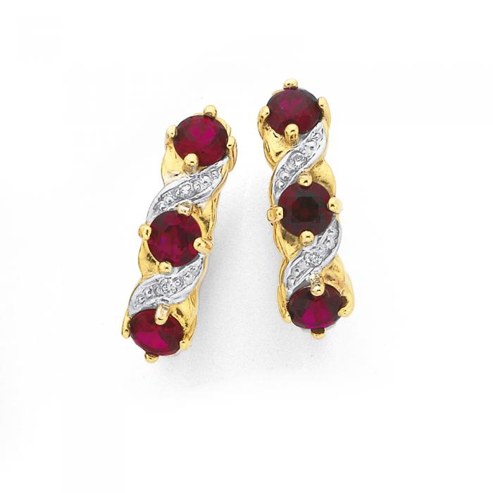9ct Gold Created Ruby & Diamond Earrings