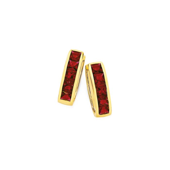 9ct Gold Created Ruby 3mm Princess Cut Huggie Earrings