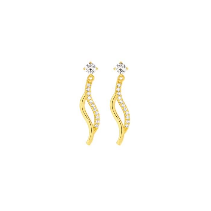 9ct Gold Cubic Zirconia Double Wave Drop Stud Earrings4101068
