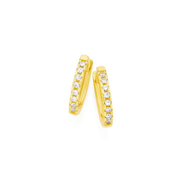 9ct Gold Cubic Zirconia Round Brilliant Cut Claw Set Huggie Earrings 4101102