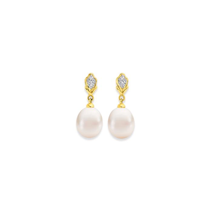 9ct Gold Cultured Freshwater & Diamond Drop Earrings