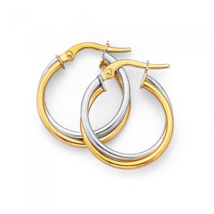 9ct Gold Two Tone 15mm Double Hoop Earrings