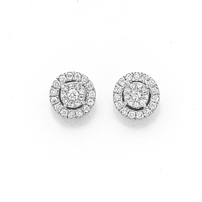 9ct White Gold Diamond Cluster Frame Stud Earrings