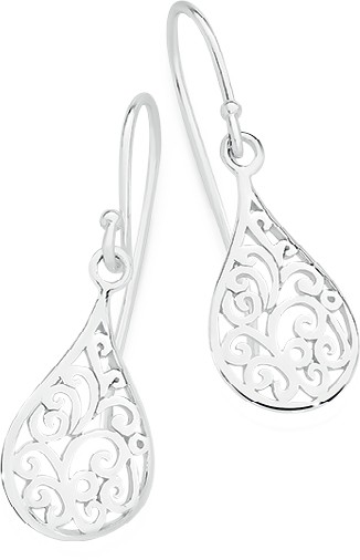 Sterling Silver Filigree Pear Drop Hook Earrings 1371054