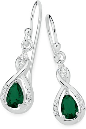 Sterling Silver Green Pear & Marquise Cubic Zirconia Drop Earrings