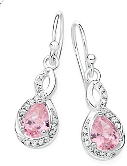 Sterling Silver Pink Pear Cubic Zirconia Twist Drop Hook Earrings