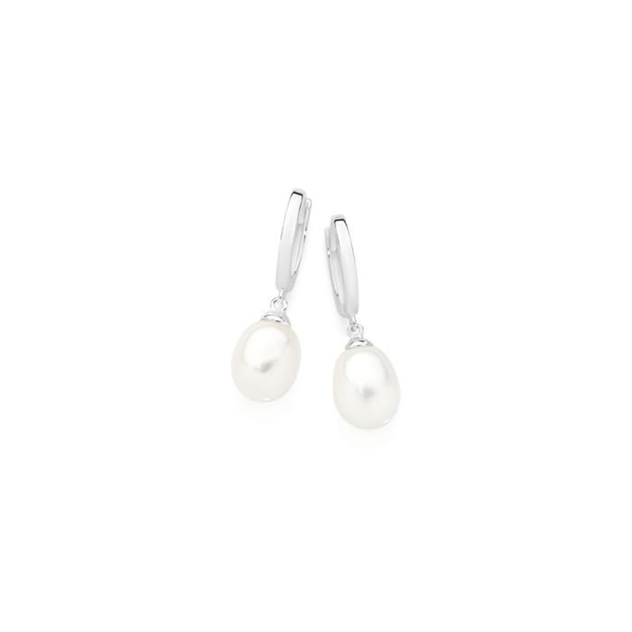 Sterling Silver Cultured Freshwater Pearl Drop Huggie Earrings