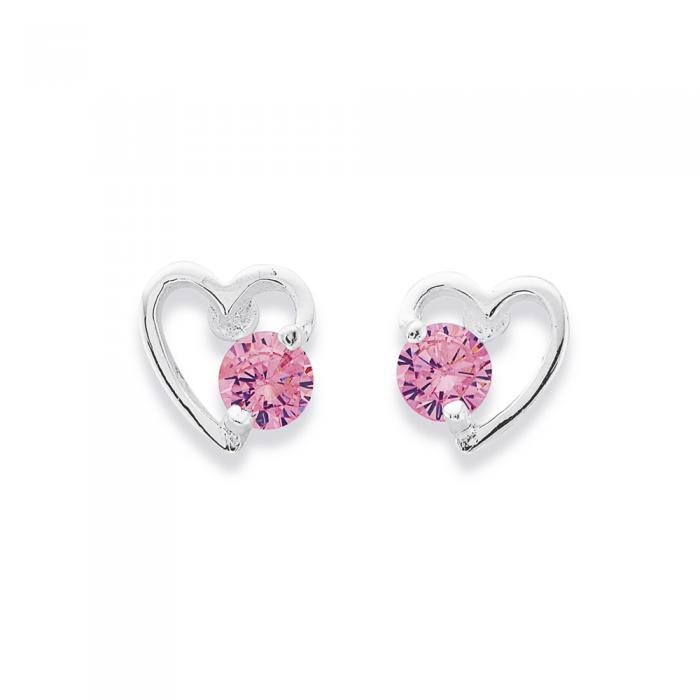 Sterling Silver Pink Cubic Zirconia Centre Open Heart Stud Earrings. Approximate Dimension - 5mm Width x 5mm Length.