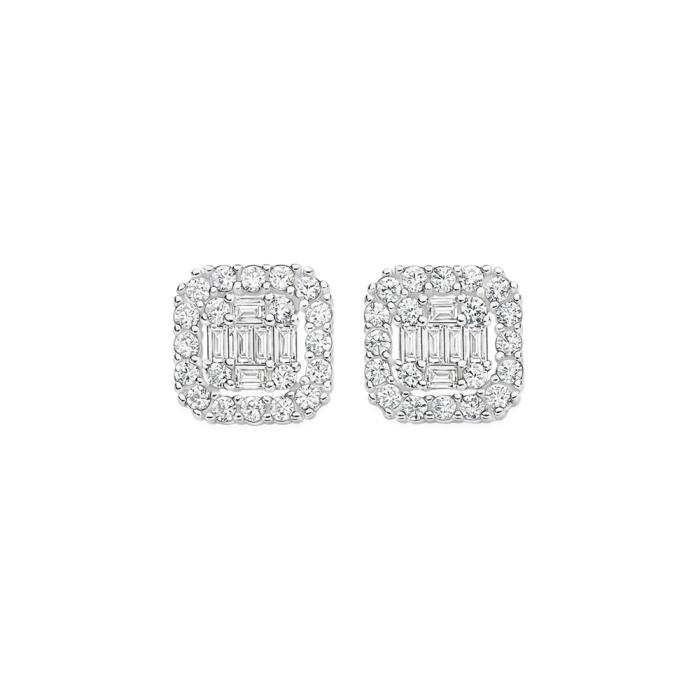 Sterling Silver Square Cubic Zirconia Cluster Stud Earrings
