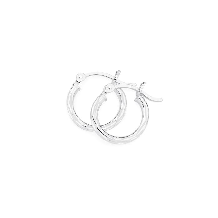 Sterling Silver Striped 2x14mm Dia-Cut Hoop Earrings