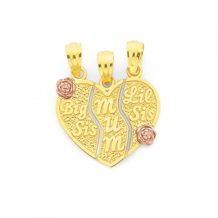 9ct Gold 'Big Sis, Mum, Lil Sis' Share Pendant