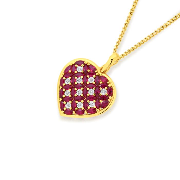 9ct Gold Created Ruby & Diamonds Marquise Cut Miracle Set Heart Enhancer Pendant