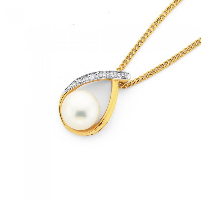 9ct Gold Cultured Fresh Water Pearl & Diamond Loop Pendant