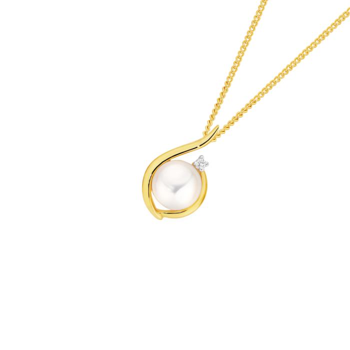 9ct Gold Cultured Freshwater Pearl & Diamond Teardrop Pendant