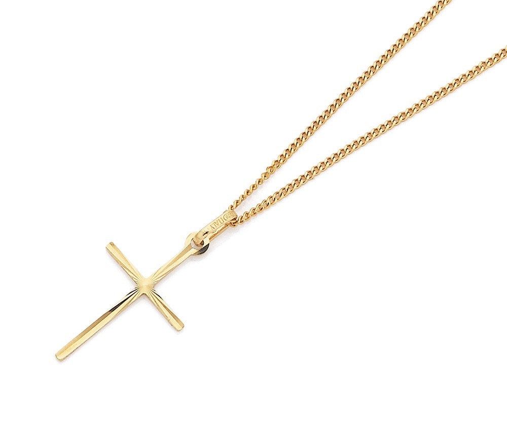 9ct Gold Diamond-Cut Cross Pendant