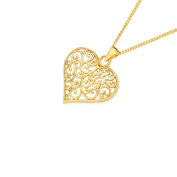 9ct Gold Filigree Heart Pendant. Approximate Dimensions - 13mm Width x 18mm Height including bail.