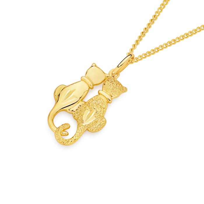 9ct Gold Polished & Stardust Twin Cat Pendant