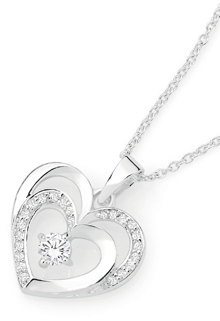 Sterling Silver CZ Pave Double Heart Pendant 1701575