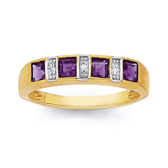 9ct Gold Amethyst & Diamond Princess Cut Band 7021032