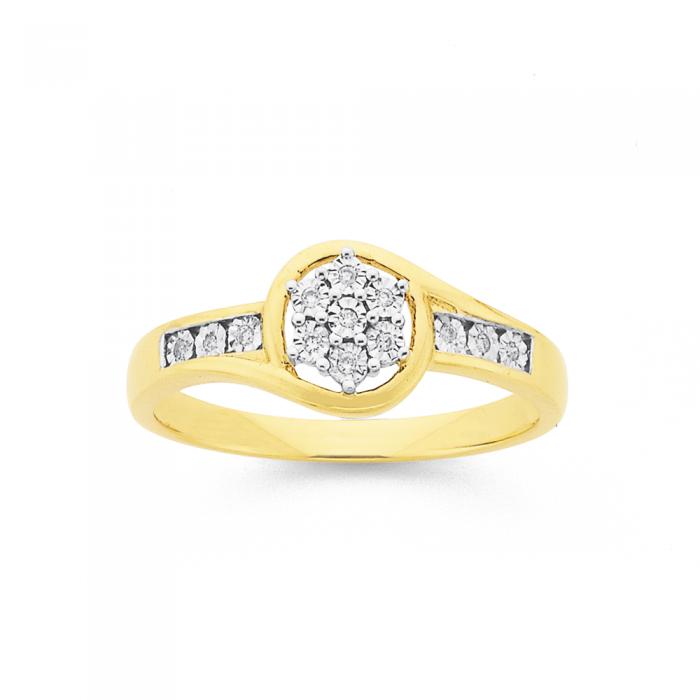 9ct Gold Diamond Miracle Set Flower Cluster Shoulder Set Ring8641426