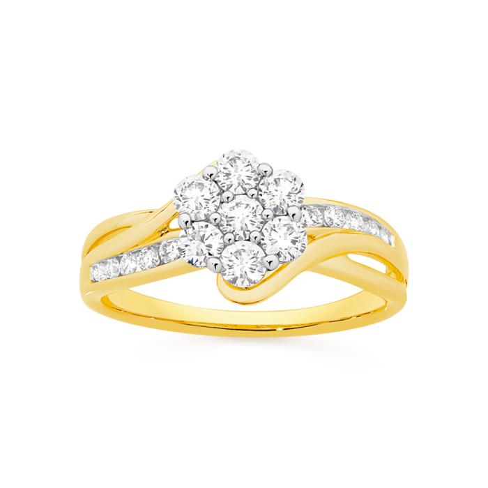 Alora 10ct Gold Lab Grown Diamond Flower Cluster Ring Total Weight = .75ct