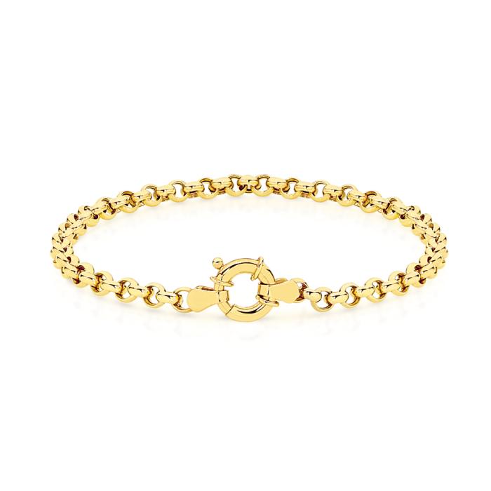 European Made 9ct Gold 19cm Hollow Round Belcher Bolt Ring Bracelet - Approximate Dimensions 10mm Bolt Ring and 4mm Link Width. This 9ct gold bracelet is hollow. Hollow Jewellery pieces are considered occasional pieces and require a certain level of care to ensure they are always looking their best.