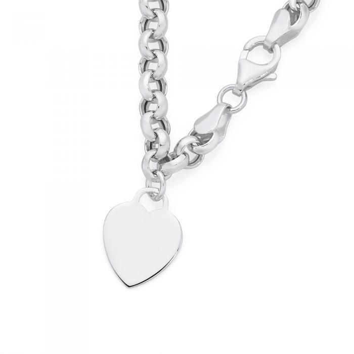 Sterling Silver Heart Charm 19cm Belcher Bracelet - Made In Italy